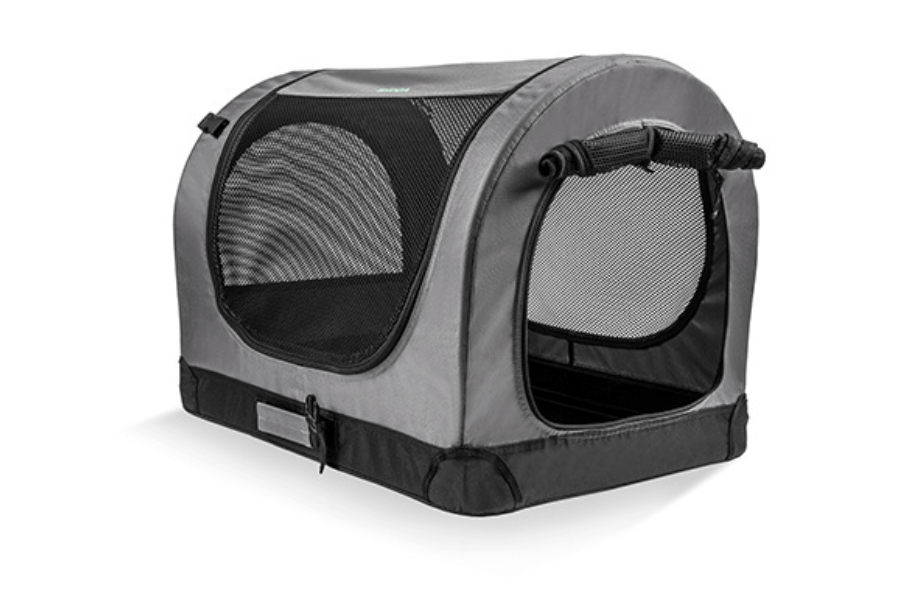 Der Griff ermöglicht, die Box einfach zutragen und durch die beiden Kunststoffriemen kann die Box beim Tragen fixiert werden. Durch einfaches Zusammen- und Aufklappen durch das bewegliche Kunststoffteil am oberen Ende der Konstruktion kann die Box überall mitgenommen werden aber auch zu Hause als Rückzugsort für Ihren Liebling sieht die Box schick aus.