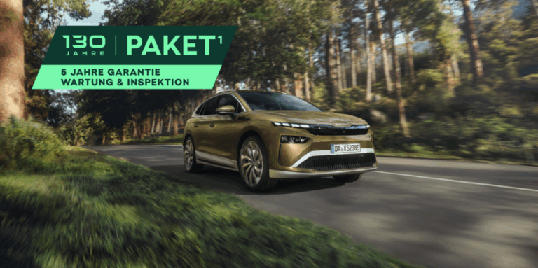 1 Das 130 Jahre Paket ist bei Abschluss eines Leasing-, Finanzierungs- oder Kaufvertrages fĂŒr ein Ć koda Neufahrzeug bis zum 30.09.2025 beim teilnehmenden Ć koda Partner erhĂ€ltlich. Das Paket umfasst die Ć koda Anschlussgarantie sowie Wartung & Inspektion fĂŒr Privatkunden bzw. Wartung & Verschleiß fĂŒr Small Fleet Kunden (gewerbliche Einzelabnehmer, ohne Sonderabnehmer, Großkunden ausgeschlossen). Bei Wartung & Inspektion bzw. Wartung & Verschleiß handelt es sich um ein Angebot der Ć koda Leasing, Zweigniederlassung der Volkswagen Leasing GmbH, Gifhorner Str. 57, 38112 Braunschweig. Garantiegeber der Ć koda Anschlussgarantie ist die Ć koda Auto a.s., mit Sitz in: tƙ. VĂĄclava Klementa 869, MladĂĄ Boleslav II, PLZ: 293 01, MladĂĄ Boleslav, Tschechische Republik und bietet eine GarantieverlĂ€ngerung um bis zu 36 Monate im Anschluss an die zweijĂ€hrige Neuwagengarantie bei einer maximalen Gesamtfahrleistung von 100.000 km innerhalb des Garantiezeitraums. Die Leistungen entsprechen, mit Ausnahme der Lack- und Karosseriegarantie sowie der Ć koda Garantie fĂŒr Hochvoltbatterien in BEV – und PHEV-Fahrzeugen, dem Umfang der Herstellergarantie. Mehr Details hierzu erfahren Sie unter www.skoda-auto.de/service/anschlussgarantie.